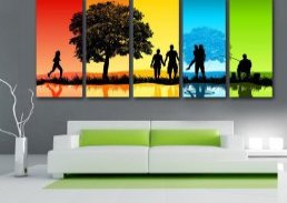 Если вы хотите акцентировать внимание на одной части помещения, выбирайте яркие рисунки. К примеру, если стена белая, идеально на ней будут смотреться сюжетные картины или уличные пейзажи. «Вытянуть» помещение с низкими потолками можно за счет прямоугольных высоких полотен. Повесив рядом 3-4 удлиненные картины, вы зрительно увеличите пространство.