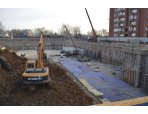 Строительная бригада закончила устройство «стены в грунте». На данный момент разрабатывается основная часть котлована по проектной отметке.